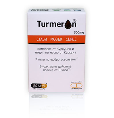 Турмерон 500мг капсули е уникална комбинация Куркумин + Етерично масло от куркума. БиоАктивна форма на Куркума – патент BCM-95®.